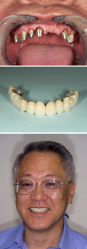 前歯の部分の舌側に金属が使われ、強い力で咬めるよう前歯が利用されています。