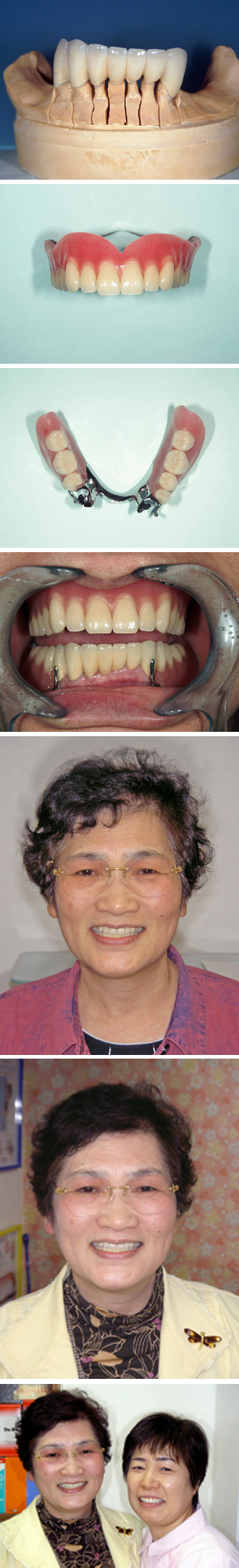 下顎の入れ歯に少しの金属の光った部分が見えますが、笑顔の口元を見ていただければ、ほとんど目立たない入れ歯になっています。
