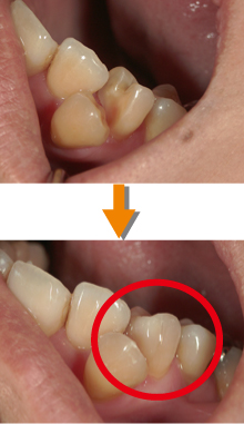 実際に接着した状態です、色も実際の歯の色に近づけるのでほとんど目立ちません。